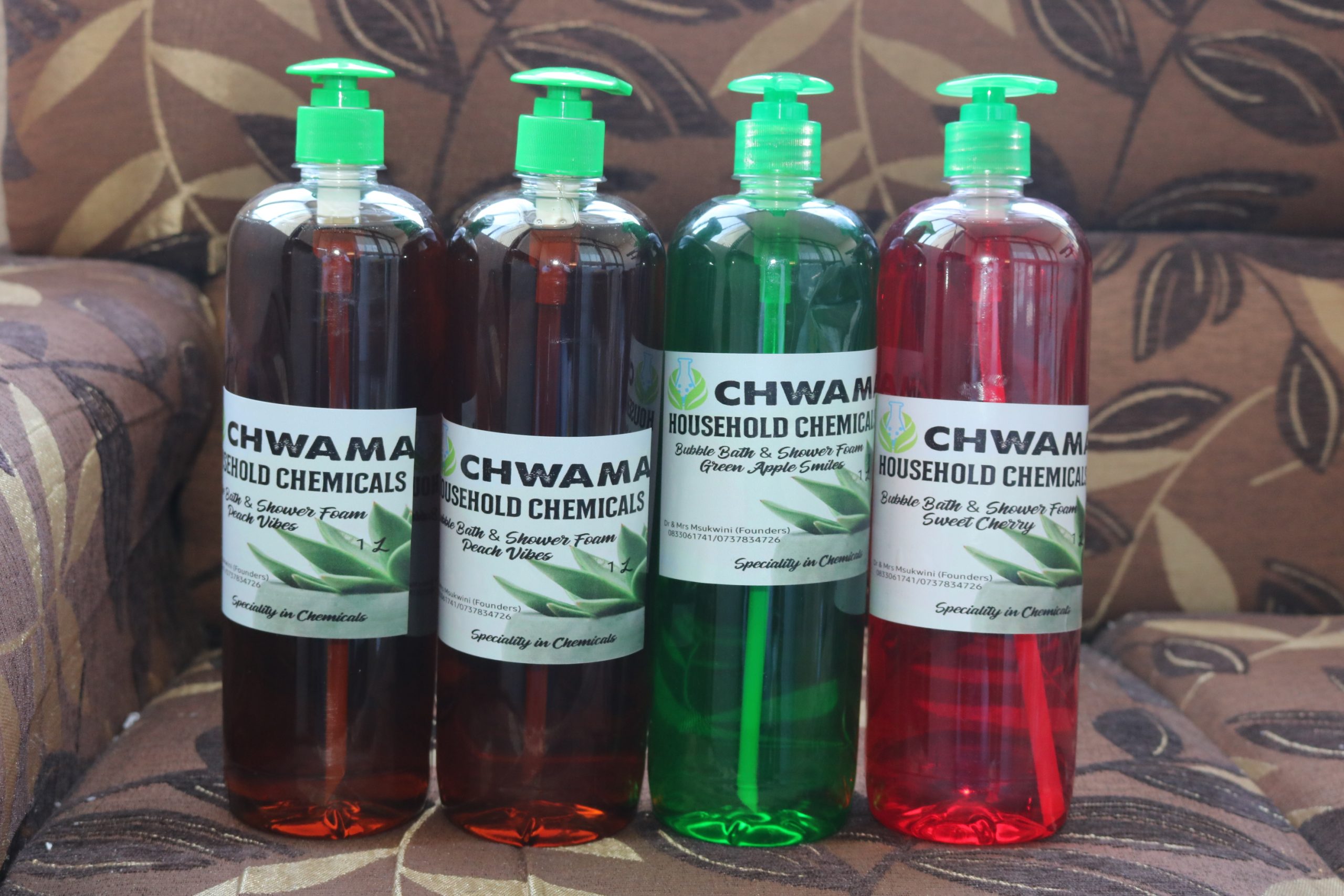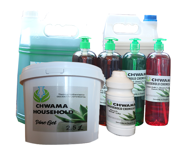 The Chwama Investment CC is an umbrella of project management for the Chwama Industrial and Household Chemicals which manufactures detergents and soaps. The Chwama Investment CC was registered in 03/06/2005. Our products include the Dish-washing Liquid, All Purpose Cleaner, Hand Wash Liquid, Fabric Softener, Tile Cleaner, Bleach, Pine Gel, Shower & Bath Foam, Shampoo and Drain Cleaner/Opener. Our products have pH 7-8 value which means they are neutral and friendly to the environment.